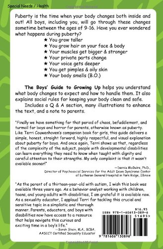 The Boys Guide to Growing Up Choices and Changes During Puberty is really a story about a professional plus a businessman that produces us think on what our vision and purpose is. This book will help in setting priorities. When you've got set priorities, you'll know what actions to take to achieve your primary goal. The Boys Guide to Growing Up Choices and Changes During Puberty allows us to prepare and deliver various important schedules including meeting preparation to skill training. Following detail by detail, i will be motivated to succeed in a profession which fits our passion. The Boys Guide to Growing Up Choices and Changes During Puberty is a different way of looking at defining happiness in every facet of our everyday life including personal life and relationships in work. Through this book we'll be helped in obtaining our very own type of happiness, not happiness by the standards of others. Many motivators misconception regarding the material they give when meeting audiences. The Boys Guide to Growing Up Choices and Changes During Puberty shows what number of misconceptions can be found. The motivators goes bankrupt if they do not know clearly who they may be conversing with. This book will let us in knowing our potential and superiority with what field. Everyone must be able to lead. Everyone must have an equally part. By scanning this book we can learn about how to lead others while transmitting to others in order to also become leaders. A great leader is really a leader that can produce leaders down the road. The Boys Guide to Growing Up Choices and Changes During Puberty teaches us to regulate the response triggered by something more important. This assists us to produce better habits. Our behavior in answering problems affects our daily performance along with the world of work. This The Boys Guide to Growing Up Choices and Changes During Puberty enables us realize that true strength doesn't originate from will. The strength which enables us become successful originates from selecting the best decisions and robust commitments. So many books are circulating weekly, a growing number of variations of books we can see. Many options are very important, but way too many choices make us confused. It isn't uncommon to get a book we think is nice when at the bookstore, evidently once we get home the ebook just isn't as interesting even as thought. You can find 3 teams of books in line with the famous philosopher in England, Francis Bacon, you will find books that only need to be tasted, you can find books that must be swallowed up, and you will find books that really must be chewed and digested. So what can you mean? Books that ought to be tasted are books we don't need to read them all. Just by reading a portion of the book you'll be able to have in mind the belongings in the book well, be aware of it well. The novel swallowed is really a book that doesn't require effort, analysis that is certainly too deep to understand the belongings in it. Usually this can be a book that's your field of interest. By way of example, a los angeles accountant reads a bookkeeping book, this is a book that generally falls into the category of books which are swallowed. Why is the publisher needs an ice machine? Because quality publishers ought to publish good and level of quality written works. Professional owners dare to guarantee the quality of guides because they work through rigorous choice and censorship processes. Author's reputation is usually one of the important indicators of the quality evaluation of a book. Educational as well as author experience factors are a guarantee of the quality on the work they produce. Harmony, accord, unison, union, concord, unanimity of content is also a key factor. Readers will feel that they have obtained additional knowledge through the articles presented. By knowing the items that are weighty, the reader doesn't feel loss to own often the book even though the price is a little expensive. Professional page setup instantly improves the quality of book articles. Thus, readers can have a substantial impression of the book in addition to feel in line with it. Very good print quality also makes the reader not feel sorry to purchase it because the money spent is usually commensurate with the quality on the book and the knowledge obtained. In reading, we should be selective in choosing looking at books because not all examining books have benefits. Here are tips that can be considered finding a book. Customize often the book we will read with mood. Every now and then, try to see the latest magazines to get the cozy information that is happening all around us. Read The Boys Guide to Growing Up Choices and Changes During Puberty that can broaden your horizons. May read books that are persona damaging. Read The Boys Guide to Growing Up Choices and Changes During Puberty that will motivate us to learn.